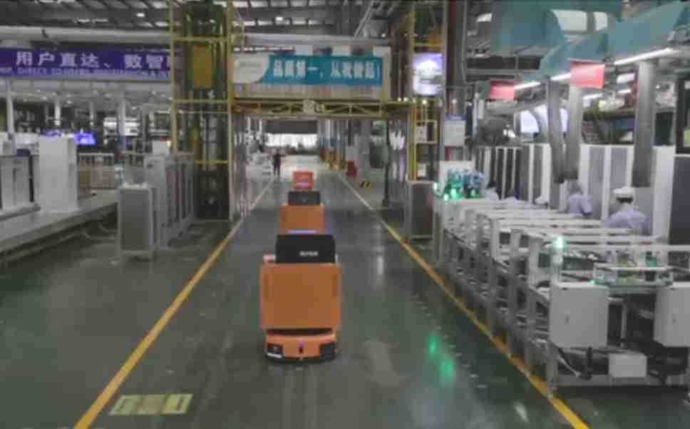 为车载冰箱物流配送打造的智能解决方案,,,包含产中物流通过潜伏举升AMR搬运至线边,,,,产后成品物流智能仓储,,,流程包含产中物流智能齐套入库,,线边安灯叫料AMR智能配送至线边,,,,成品入库、、、、出库,,,通过无人堆高车机器人,,,智能仓储管理替代人工作业管理,,,实现更高存储、、更高效率、、、、更具柔性化的解决方案。。